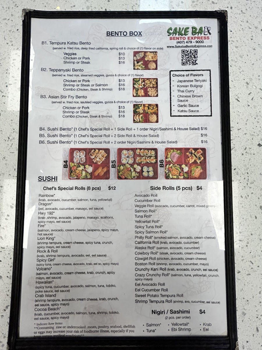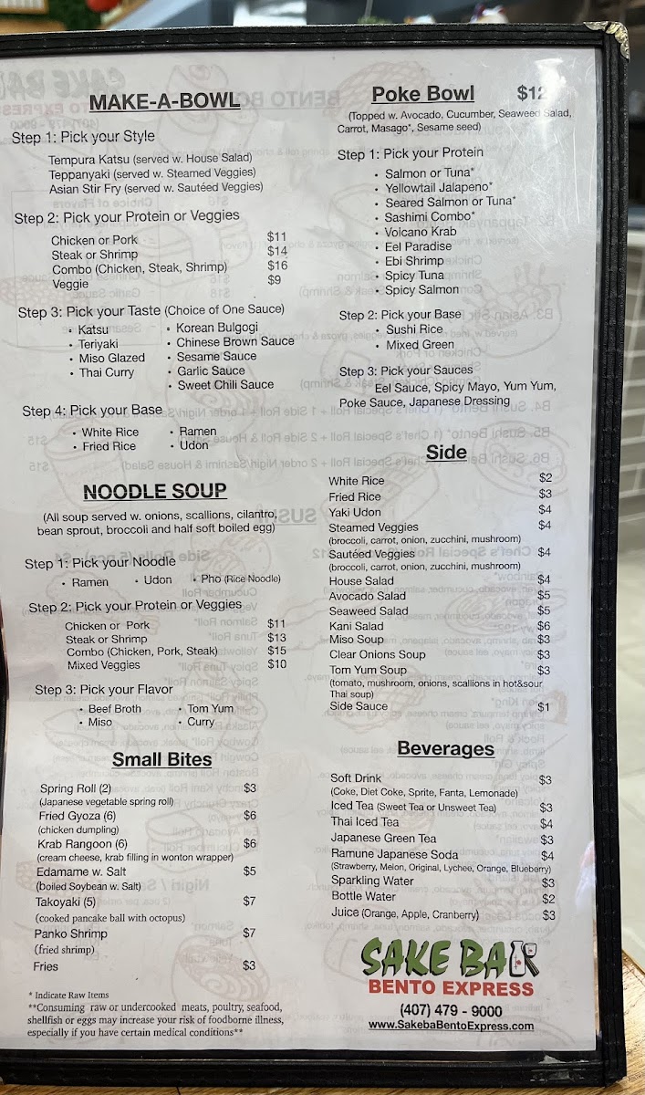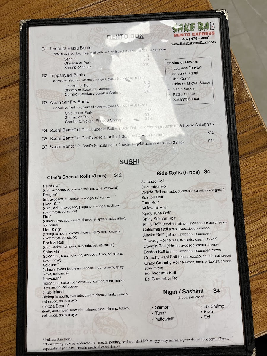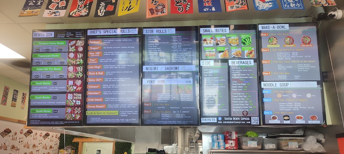 Beyond sushi, the menu expands confidently into hot dishes and bowls. Hibachi Fried Rice, Yaki Udon, and hearty Noodle Soup options like Ramen Soup, Pho Soup, and Udon Soup cater to guests craving warmth and comfort. The Bento Box lineup-Tempura Katsu Bento, Teppanyaki Bento, and Asian Stir Fry Box-along with customizable Make-A-Bowl options such as Tempura Katsu Bowl and Teppanyaki Bowl, round out the menu with filling, value-driven meals. Finally, refreshing drinks like Japanese Unsweet Green Tea (Can), Peach Green Tea, Lychee Green Tea, Classic Milk Tea, and Mango Green Tea provide a clean finish. Overall, the menu feels thoughtfully curated, approachable, and satisfying-an easy choice for anyone looking to enjoy Japanese-inspired flavors in Kissimmee.